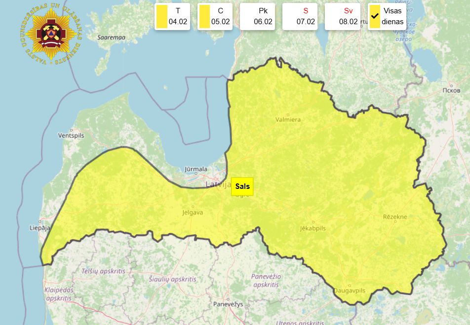 Latvijas Vides, ģeoloģijas un meteoroloģijas centra sinoptiķi brīdina par laiku trešdienas vakarā, naktī uz ceturtdienu un no rīta. Izplatīts brīdinājums par laiku naktī uz ceturtdienu un no rīta