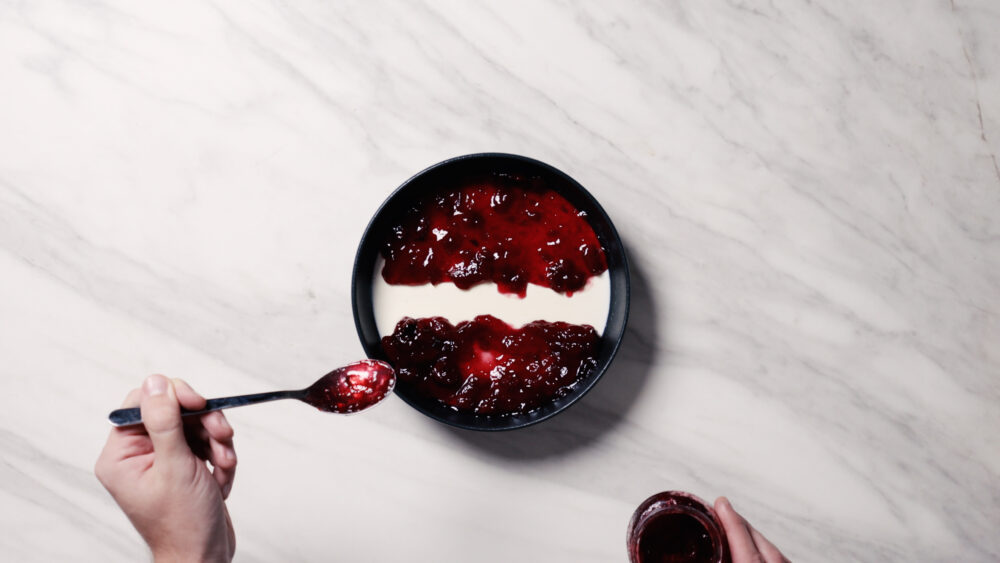 Klasiskā vaniļas panna cotta ar ķiršu ievārījumu